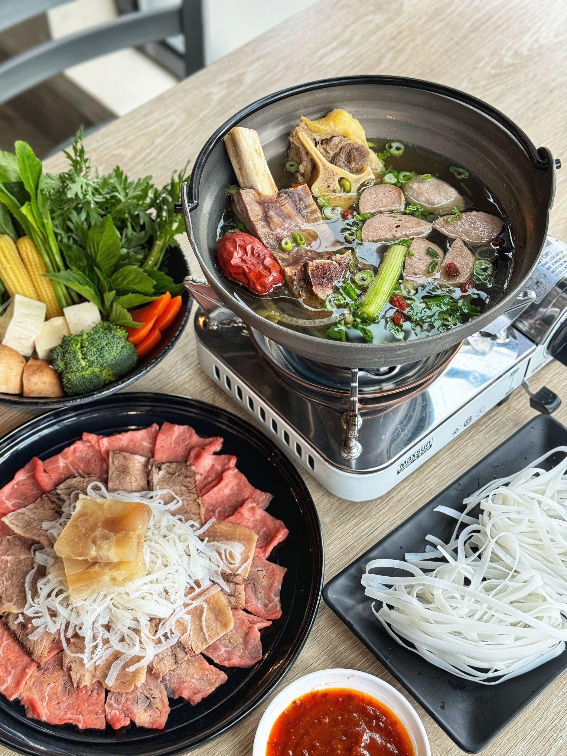 - AAA eye of round (or brisket) and beef ball Pho